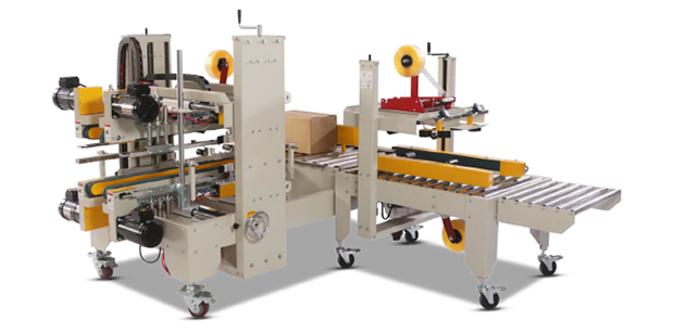 自动四角边封箱机GPG-50+GPA-50工型封箱机的成功生产,填补了特别行业需进行角边封箱,特别是针对与电子产业和需走海运的行业,提高了防尘、防潮、防氧化、防酸碱度的保护;手工调节宽度及高度,方便、快速;90°转角机,气缸自动推箱;纸箱上下四个角边同时自动封箱、抚平、快速平稳;可与GPA/GPB/GPC机型联机组合完成工字型封箱机。已广泛地应用于食品、医药、玩具、烟草日化、电子等行业。