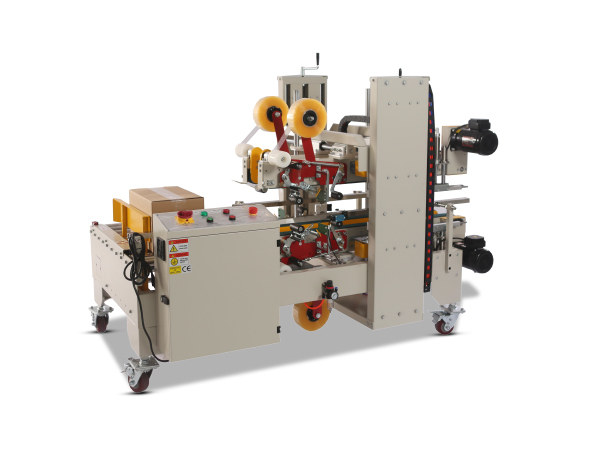 自动角边封箱机是纸箱经前段封箱机中间上下封口后,进入90度转角机,由推箱板推入角边封箱机,光电检测到后机器根据纸箱规格,PLC控制,自主调节机器宽度及高度,同时封四角边,封箱速度快,封箱折角无褶皱,纸箱上下四个角边同时自动封口、抚平,适合对外包装要求比教高的客户,对于内部产品要求保护严格的厂家。广泛应食品、医药、饮料、烟草、日化、汽车、线缆、电子等行业。