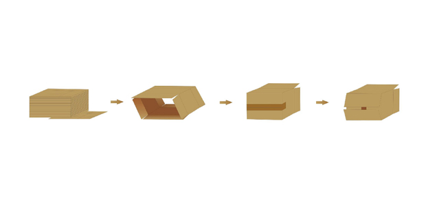 采用双连杆双摆臂、折前后盖机构设计,纸箱成型快速,动作轻巧,开箱畅快,纸箱成型率高。